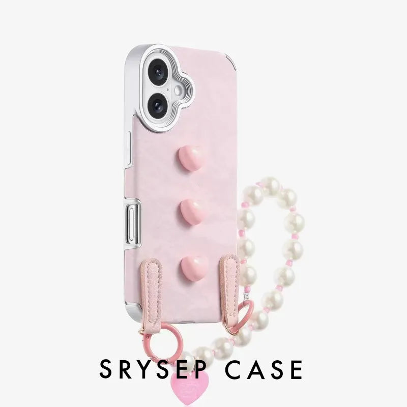 Cartoon Kitty Phone Case For iPhone 17 16 15 14 13 12 11 Pro Max Plus With Pearls Charm
