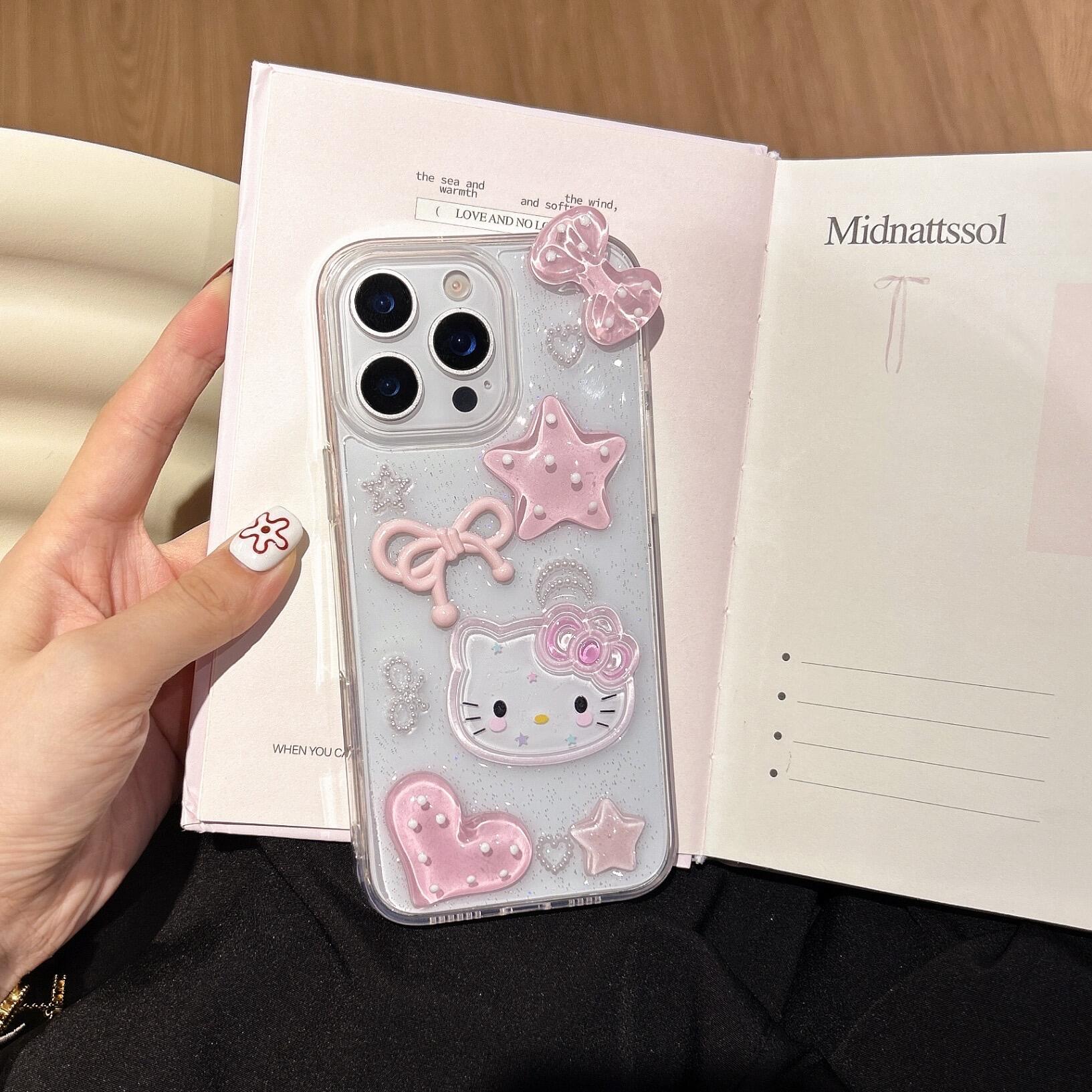 Coque de téléphone Kitty transparente faite à la main, mignonne et kawaii