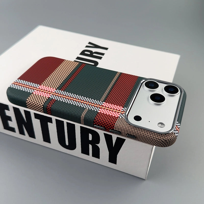 Coque arrière magnétique texturée en fibre de carbone Kevlar compatible MagSafe pour iPhone