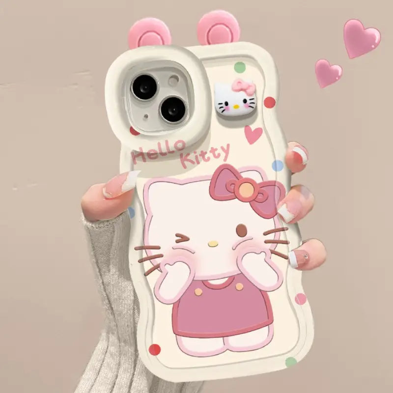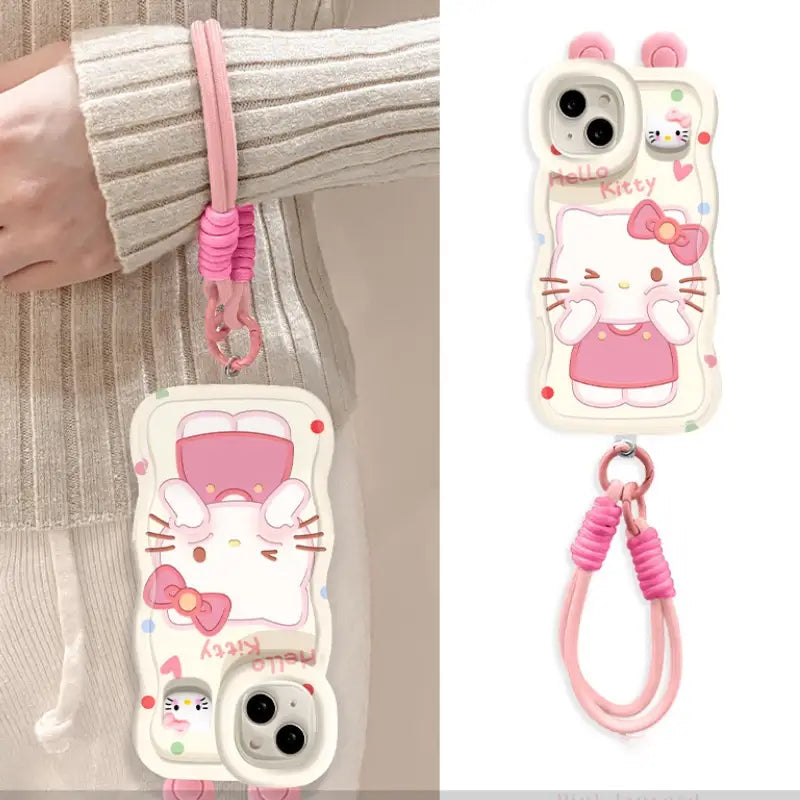 折りたたみ式ブレスレット付き、キュートな3D猫柄iPhoneケース