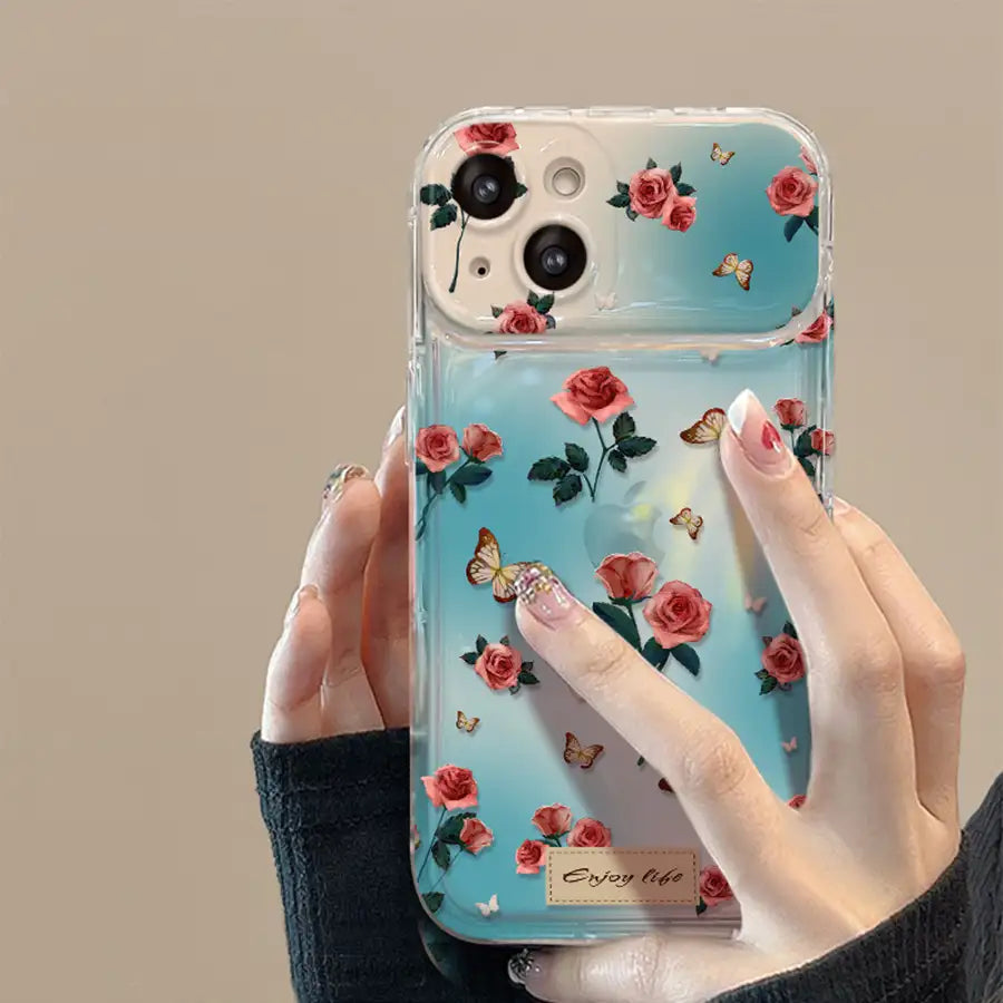 Floral Foldable Mirror Stand Back Cover Glitter iPhone Case