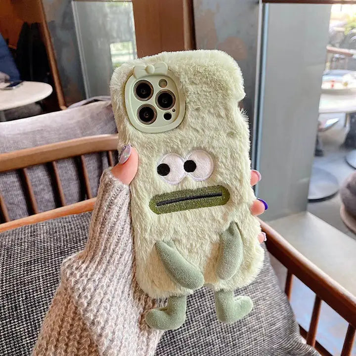 3D Monster Velvet Plush With Bow Lens Protector Phone Case for iPhone