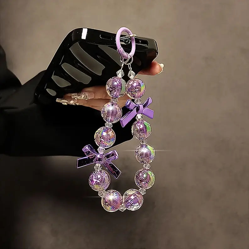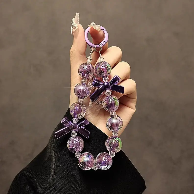 Handmade DIY Crystal Beads Bracelet Charm for Phone Case Pad Case Bumper Bags, Decorative Charm with Snowflake Design and White and Glittery Beads Keychain