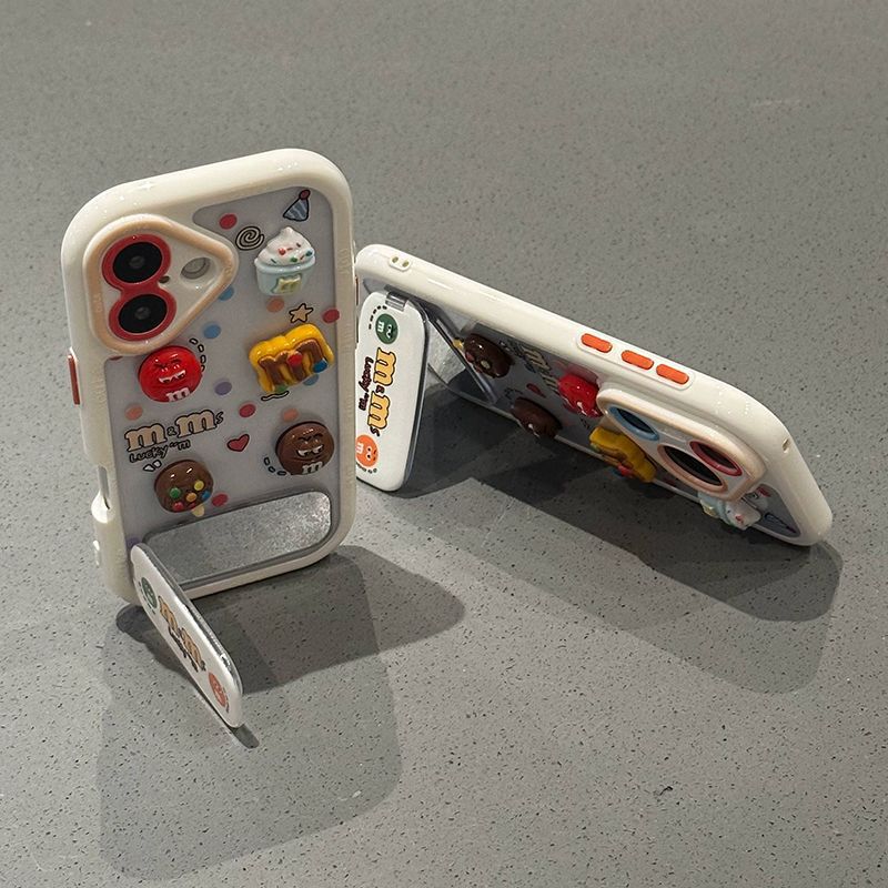 Cute 3D Chocolate Beans Mirror Kickstand Silicone Phone Case for iPhone 17 16 15 14 13 12 11 Pro Max X Xr 7 8