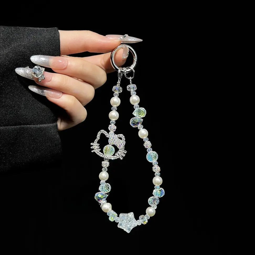 Handmade Kitty Pearls Crystal Beads Charm for All Phone Case Pad Case Bumper