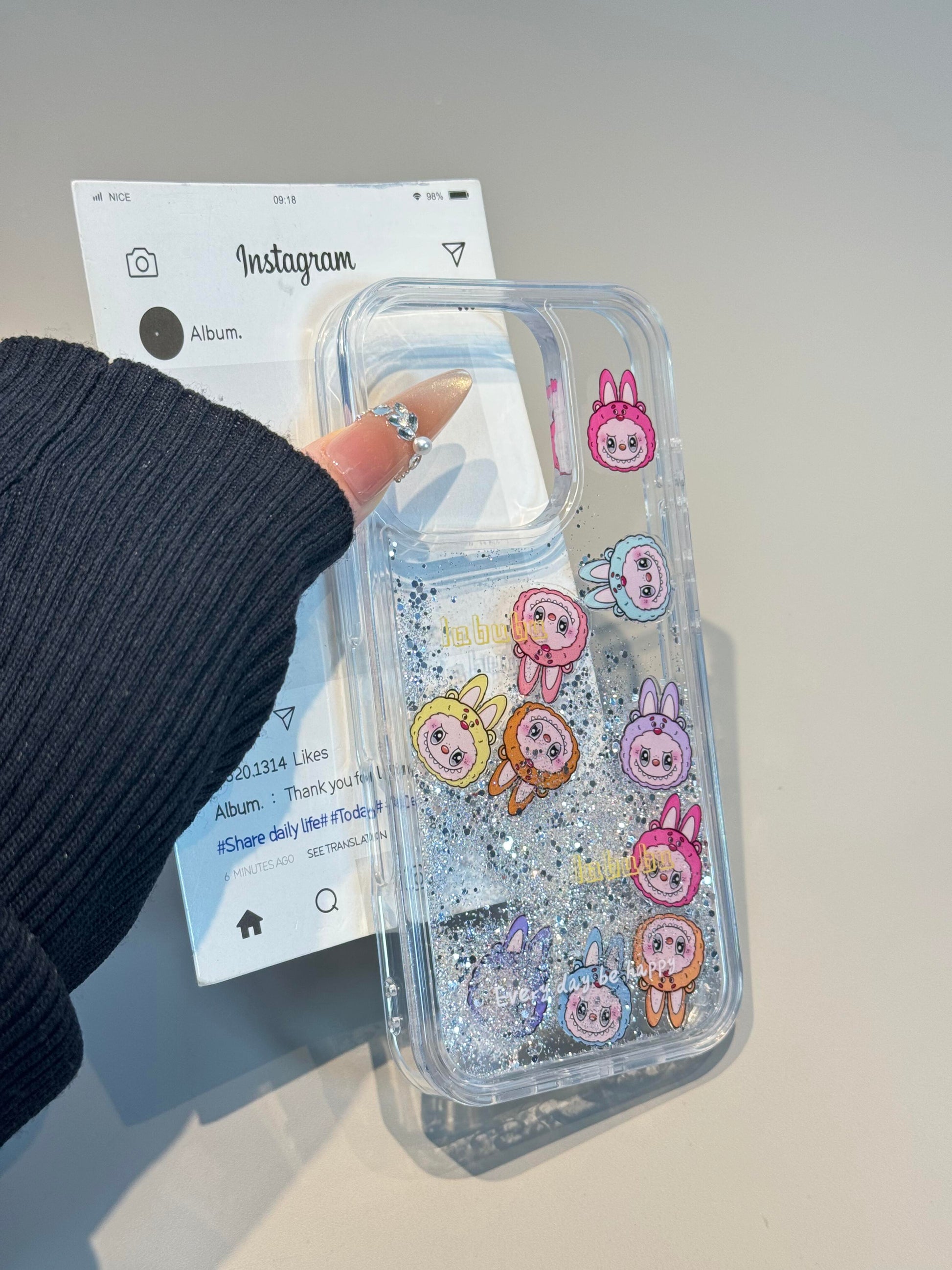 Labubu Bling Glitter Liquid Quicksand Clear Cute Kawaii Phone Case