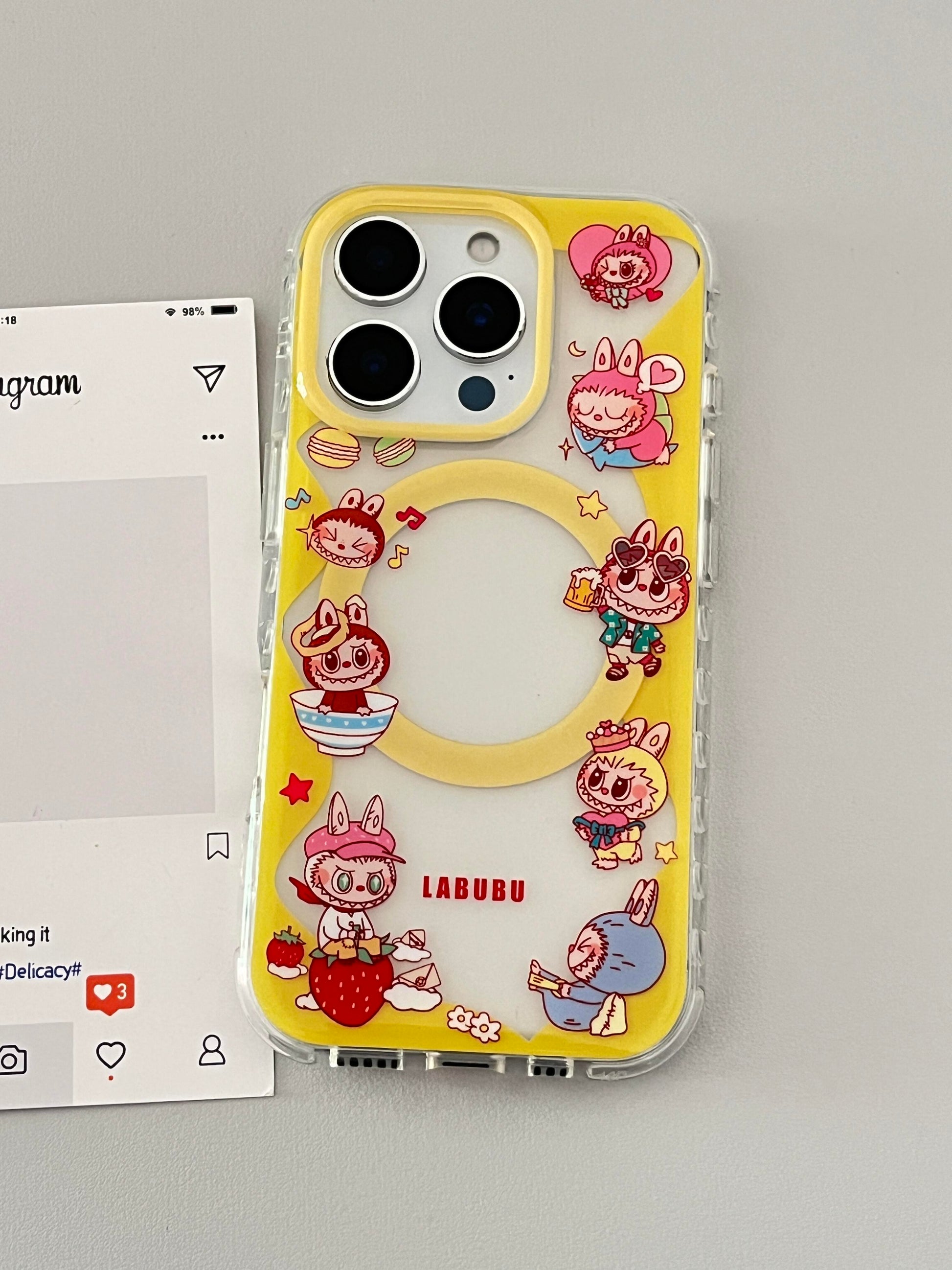 LABUBU Yellow Cute Kawaii MagSafe Case + MagSafe Stand Holder / Phone Grip