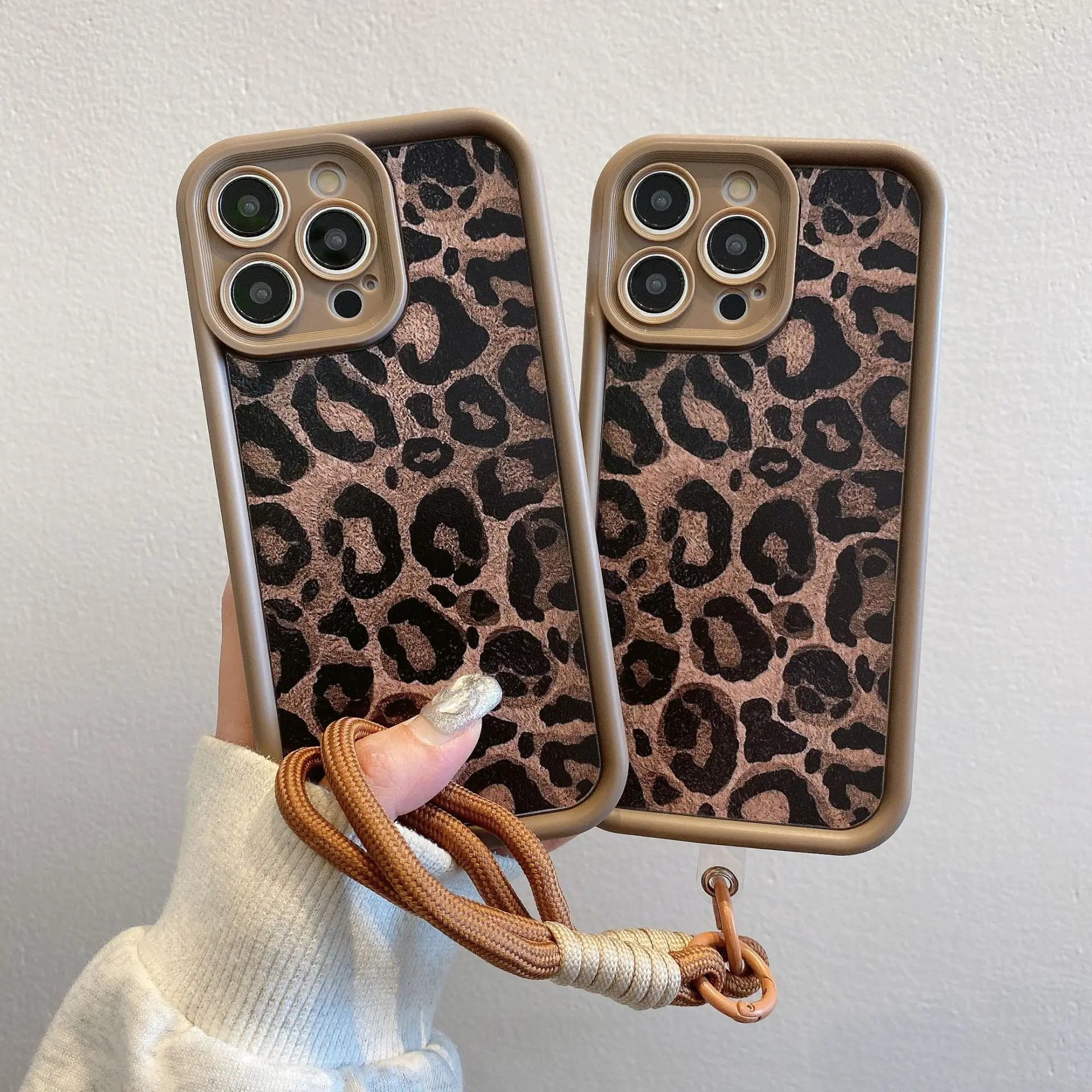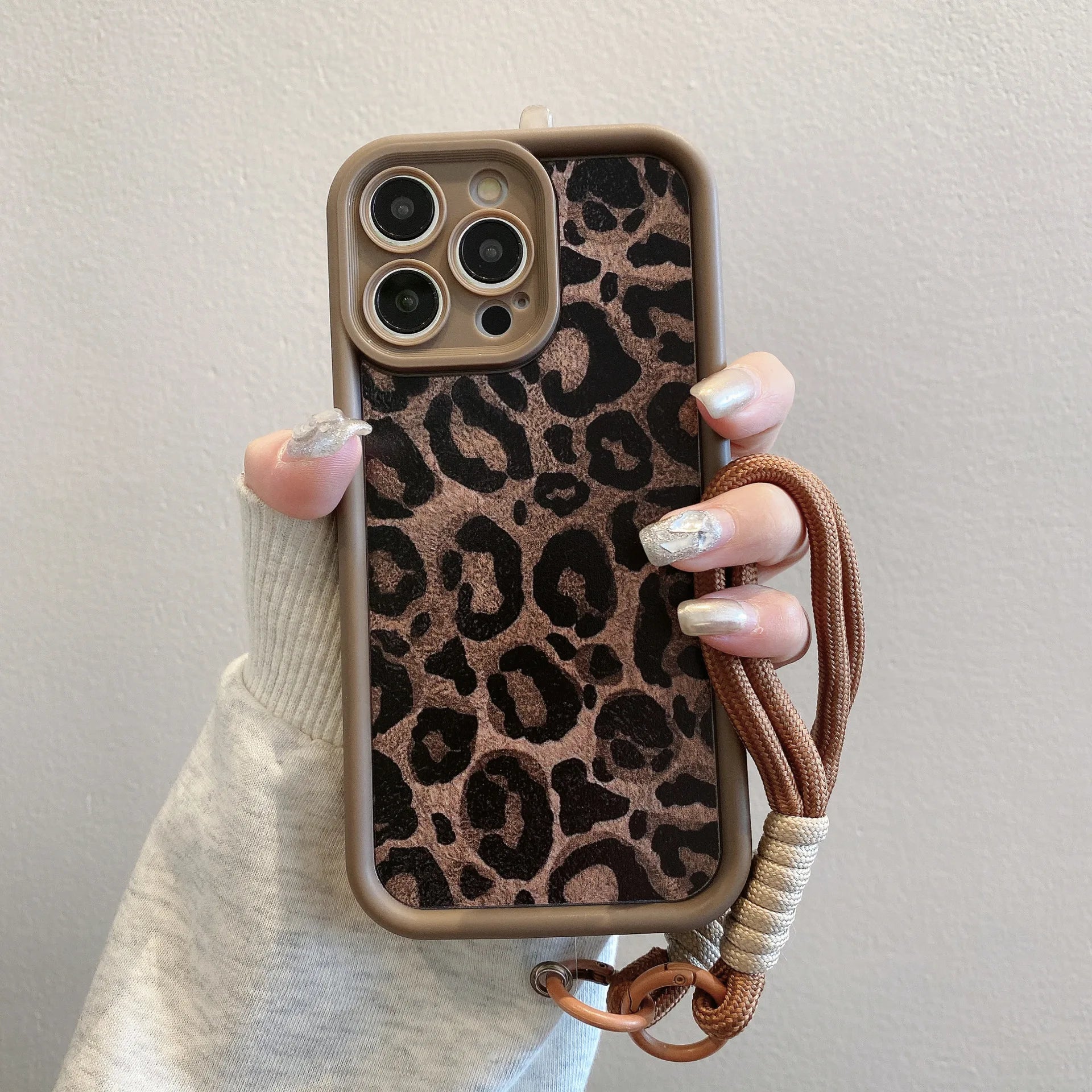 Leopard Print Pattern With Lanyard Case For iPhone 17 16 15 14 13 12 11 Pro Max X XR XS 7 8 Plus Shockproof Silicone Soft Cover