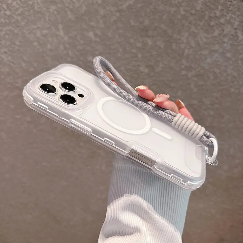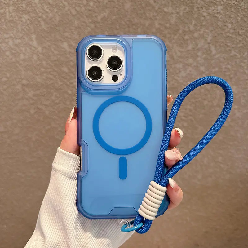 Candy Color Semi-clear Magsafe Lanyard Phone Case for iPhone 16 15 14 13 12 11