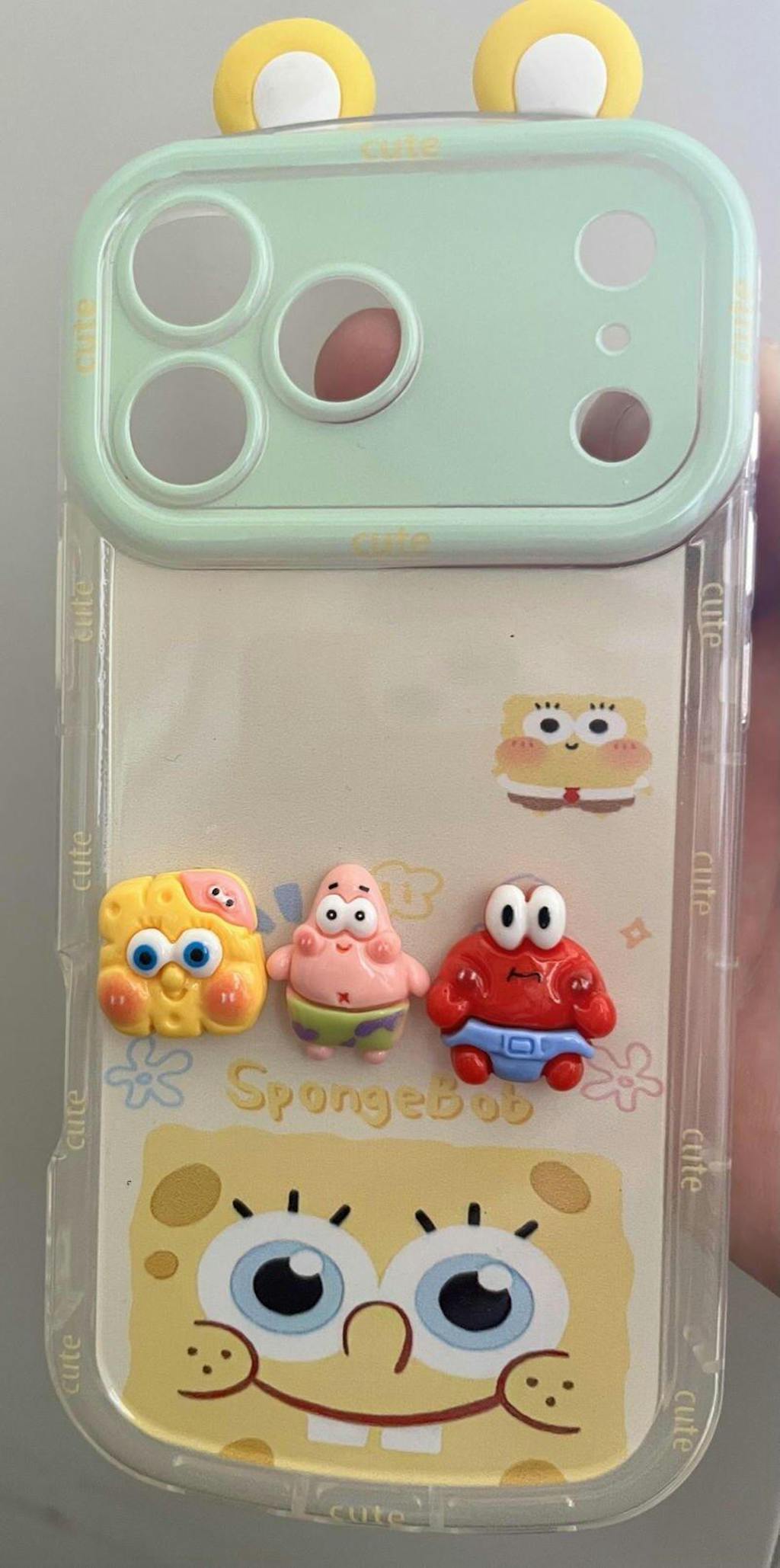 Cute SpongeBob Mirror Phone Case for iPhone Cartoon Back Cover With Chain