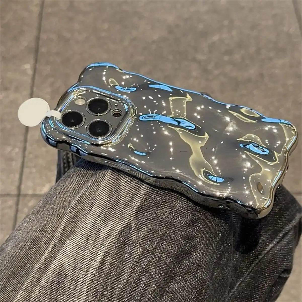 Wave Rippled Silver Shiny Phone Case For iPhone Charm Back Cover