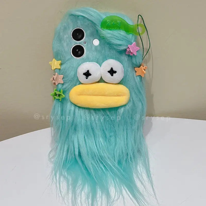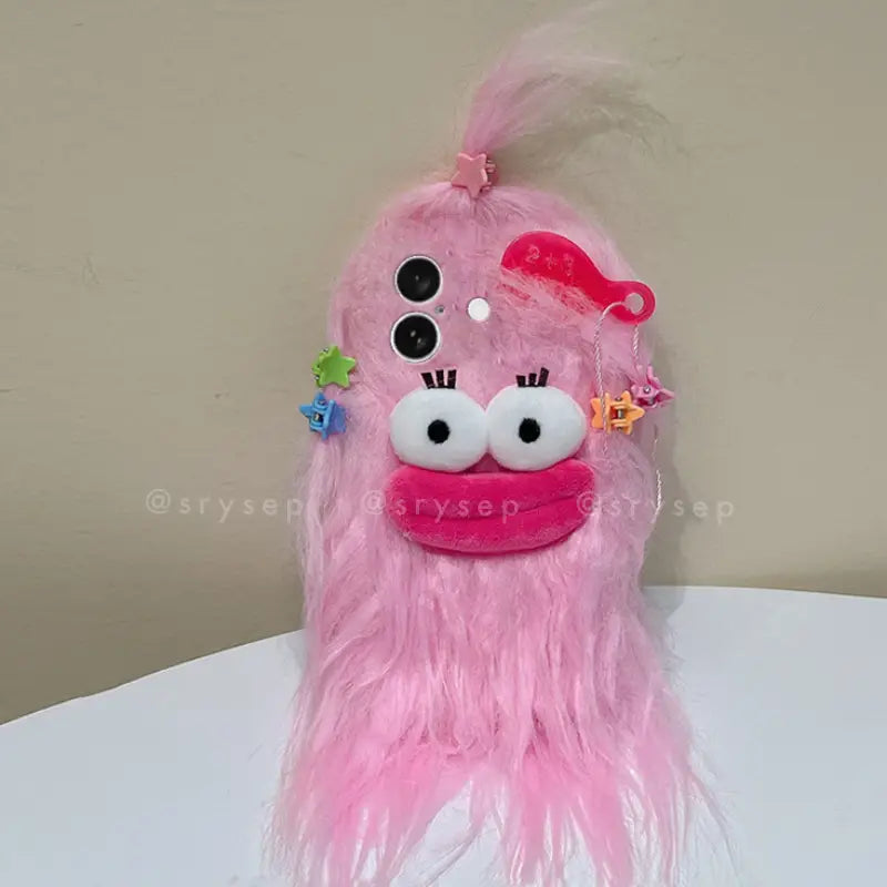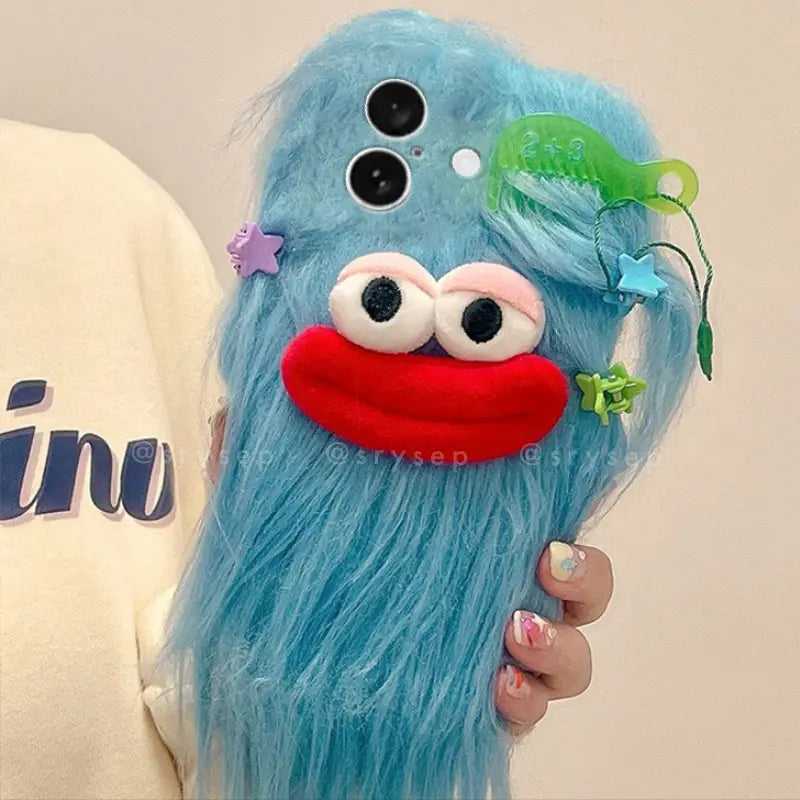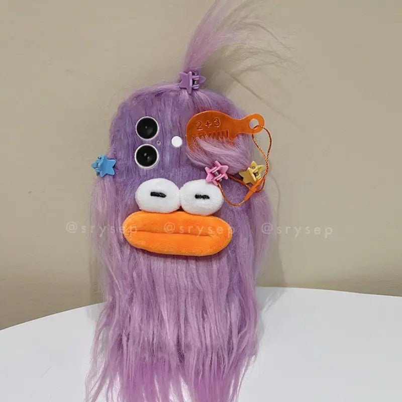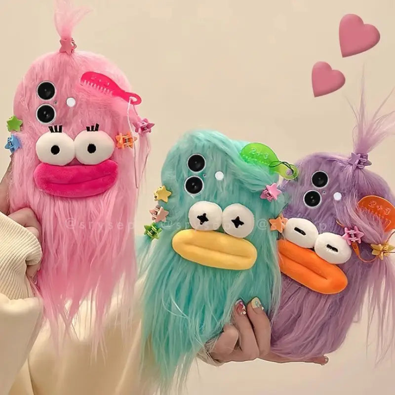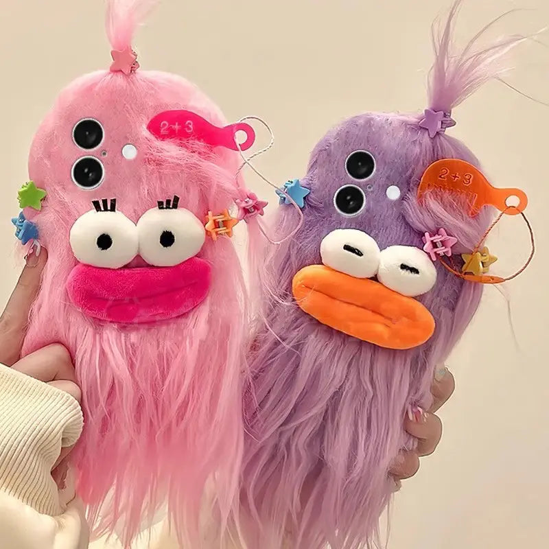 3D Hot Dog Lips Doll with Mini Hairpin Velvet Plush Phone Case for iPhone