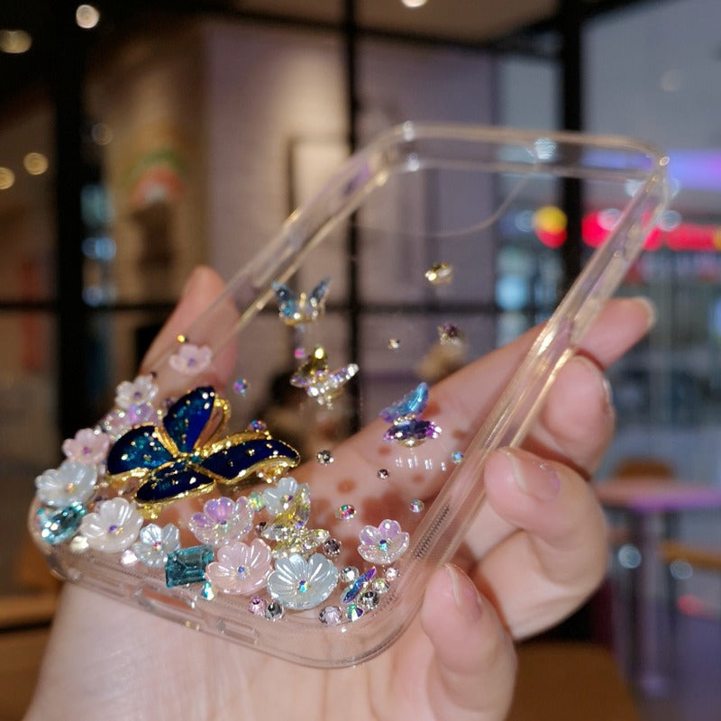 Handmade Minimalist Butterflies with Flowers iPhone Case for iPhone 16 15 14 13 12 11 Plus Pro Max